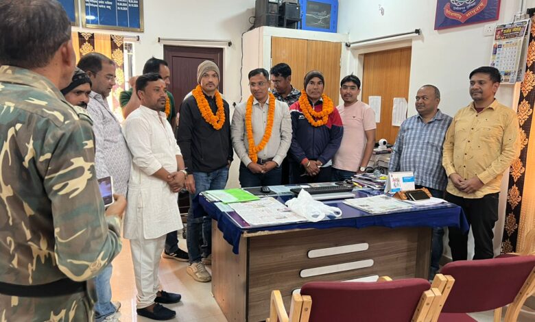 बलरामपुर। बीते सप्ताह दहेजवार में हुई चर्चित ज्वेलरी चोरी मामले का खुलासा करने के बाद बलरामपुर सर्राफा एसोसिएशन ने थाना प्रभारी भापेंद्र साहू और उनकी टीम से मुलाकात कर उनका सम्मान किया। इस दौरान सर्राफा व्यापारियों ने पुलिस टीम को पुष्पमाला पहनाकर और मिठाई खिलाकर धन्यवाद ज्ञापित किया।