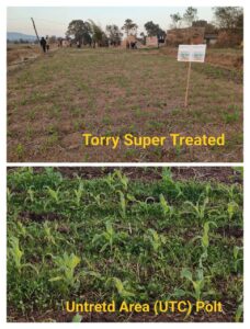 कार्यक्रम के दौरान किसानों को जानकारी दी गई कि Torry Super के प्रयोग के 4–5 दिनों के भीतर खरपतवार पर असर दिखाई देने लगता है, जबकि 7–10 दिनों में मक्का की फसल हरी-भरी एवं स्वस्थ रूप में नजर आने लगती है। साथ ही यह भी बताया गया कि यह उत्पाद फसल के लिए सुरक्षित है और इसकी बढ़वार पर कोई नकारात्मक प्रभाव नहीं पड़ता।