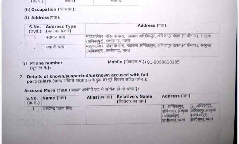मामले में कोतवाली थाना, अंबिकापुर में अपराध क्रमांक 0128/2026 दर्ज किया गया है। पुलिस ने भारतीय न्याय संहिता (BNS), 2023 की विभिन्न धाराओं तथा अनुसूचित जाति एवं अनुसूचित जनजाति (अत्याचार निवारण) अधिनियम की धाराओं के तहत प्रकरण कायम किया है। बावजूद इसके, समाचार लिखे जाने तक किसी भी नामजद आरोपी की गिरफ्तारी नहीं हुई है।