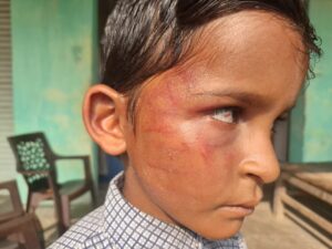 डर के कारण जब बच्चा सिर झुका कर रोने लगा तो शिक्षक और भड़क उठे तथा लगातार पिटाई जारी रखी। इसी दौरान चोट इतनी गहरी लगी कि उसकी एक आंख लाल पड़ गई और खून उतर आया।