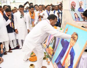 बलरामपुर, जिले के विकासखंड रामचंद्रपुर के ग्राम पंचायत विजयनगर में भारत रत्न डॉ. भीमराव अंबेडकर की जयंती हर्षोल्लास के साथ मनाई गई। कार्यक्रम में प्रदेश के कैबिनेट मंत्री रामविचार नेताम ने मुख्य अतिथि के रूप में शिरकत की। उन्होंने ग्रामवासियों को विकास की महत्वपूर्ण सौगात देते हुए 25 लाख रुपये की लागत से बनने वाली डॉ. अंबेडकर की प्रतिमा स्थापना एवं सामुदायिक भवन निर्माण कार्य का विधिवत शिलान्यास किया। मंत्री नेताम ने बाबा साहेब की प्रतिमा पर माल्यार्पण एवं पुष्पांजलि अर्पित की तथा उपस्थित जनप्र